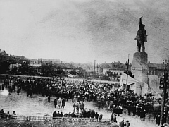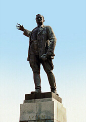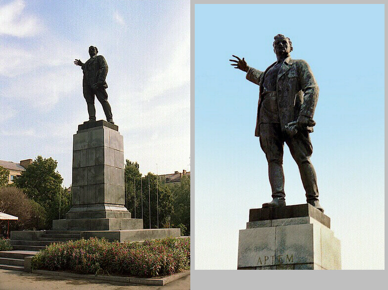 В 1909 году арестован в Харькове, после чего был приговорен к пожизненной ссылке в Восточную Сибирь, Иркутскую губернию. В 1910 году бежал, и через Японию, Корею и Китай оказался в Австралии (в 1911 г.) Здесь "Большой Том" (его местная партийная кличка) работал в профсоюзах эмигрантов и марксистских кружках, издавал русскоязычную газету "Эхо Австралии". По некоторым данным, получил местное (тогда - британское) гражданство и подданство. За проведение одной из несанкционированных забастовок недолго посидел в тюрьме г.Бристона. После февральской революции 1917 года в России, через 6 лет проживания в Австралии, вернулся на родину (вот это патриот!) через Владивосток. С 1918 года начал работать в Харькове и на Донбассе. (То есть, участвовал в самом начале большевистского захвата Украинской народной республики). В том же году скоропалительно сколотил т.н. Донецко-Криворожскую советскую республику (вот откуда берет корни украинский сепаратизм). Организовал Первую Донецкую Армию (большевиков). Сражался за Царицын (Сталинград/ Волгоград) и Северный Кавказ. С августа 1918 года, в составе т.н. "Всеукраинского" Центрального военно-революционного комитета, активно готовил план полномасштабного вторжения большевистской России в Украину (т.е., находясь в Москве, готовил "восстание" в Украине!). В ноябре возглавил военный отдел марионеточного Временного рабоче-крестьянского правительства Украины, созданного на основе только что упомянутого Центрального Военревкома, и "работавшего"... в Курске (!!! Вот это "украинское" правительство!) В своем Манифесте это "правительство" провозгласило власть гетмана Скоропадского низложенной, а все законы и указы, принятые при нем - не действительными (И это все еще из Курска. С таким же юридическим успехом можно "низлагать" правительство любой страны мира, находясь в Селятино). В январе 1919 года российско-большевистские войска предприняли военную интервенцию в Украину и захватили Харьков. Быстренько переехавшие сюда члены курского правительства объявили его столицей Украины, а затем переименовали страну в Украинскую ССР. В течение одной недели председателем этого правительства был и наш Артем, заменивший Пятакова, но так же скоропалительно сдавший пост Раковскому. После этого Артем успел создать Донецкую губернию (с центром в Славянске) и стать Председателем ее исполкома. Были в его головокружительной карьере и другие важные посты. Неудачно повоевал против украинской армии под Сумами, отходил на партийной работе в Башкирии, затем снова вернулся на Донбасс (в 1920 году), переместив центр Донецкой губернии в Бахмут (этот статус город сохранял до 1923 года). "Громогласный" (еще одна кличка Артема) поразмахивал пистолетом при восстановлении заброшенных угольных шахт (таким был стиль его руководства, что нашло свое отражение даже на первом его памятнике) и уехал в Москву. Здесь он стал членом ЦК РКП(б), работал на разных должностях. Постоянно противопоставлялся Лениным (позже - Сталиным) набиравшему силы Троцкому. 24 июля 1921 года, во время экскурсионной поездки группы иностранцев (делегатов III Конгресса Коминтерна) в Подмосковье, сопровождавшейся Артемом, в пассажирском вагоне нового типа, уже на обратном пути произошла железнодорожная катастрофа. |