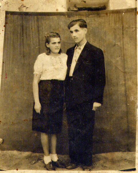 В течение одного - двух дней были проделаны все необходимые приготовления. Скромный свадебный наряд для Лиды был собран из вещей старших сестер. Молодые расписались 23 июля 1947 года. Сыграли очень скромную свадьбу (но, естественно, с баяном) и провели свой "медовый" месяц в Беленькой. Сохранилось одно из первых их семейных фото этого периода, сделанное 20 августа 1947 г.: |