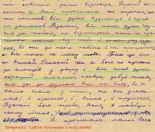 Вот фрагменты писем моей мамы папе, летом 1955 года, когда он уехал на сессию в Харьков, а мы втроем (мама, я и восьмимесячная Люда) на время переехали в Миргород, к родителям папы. (Мне в это время как раз исполнилось семь лет.)