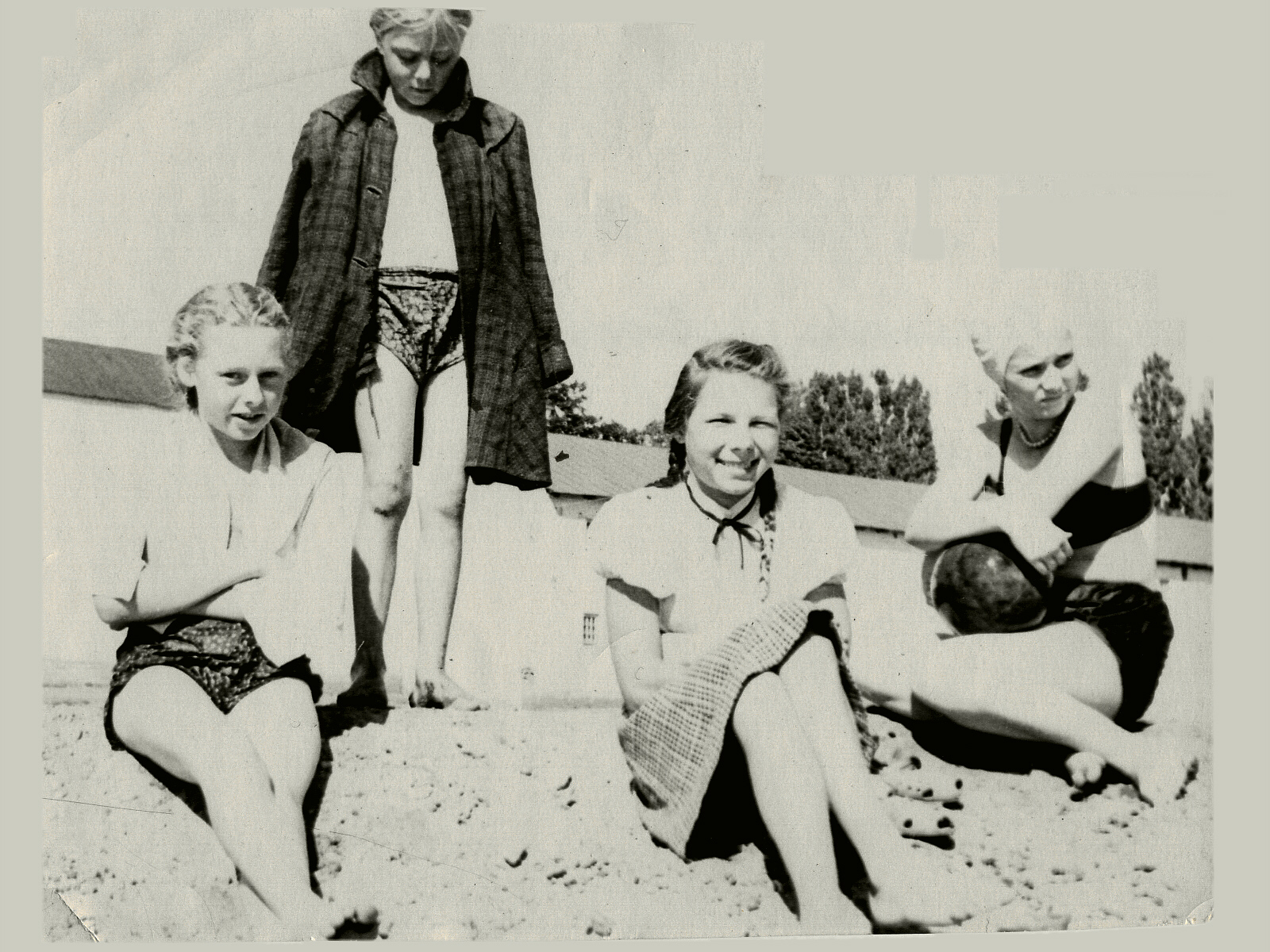 Галя и Люся с подружками на пляже в Андрушках |