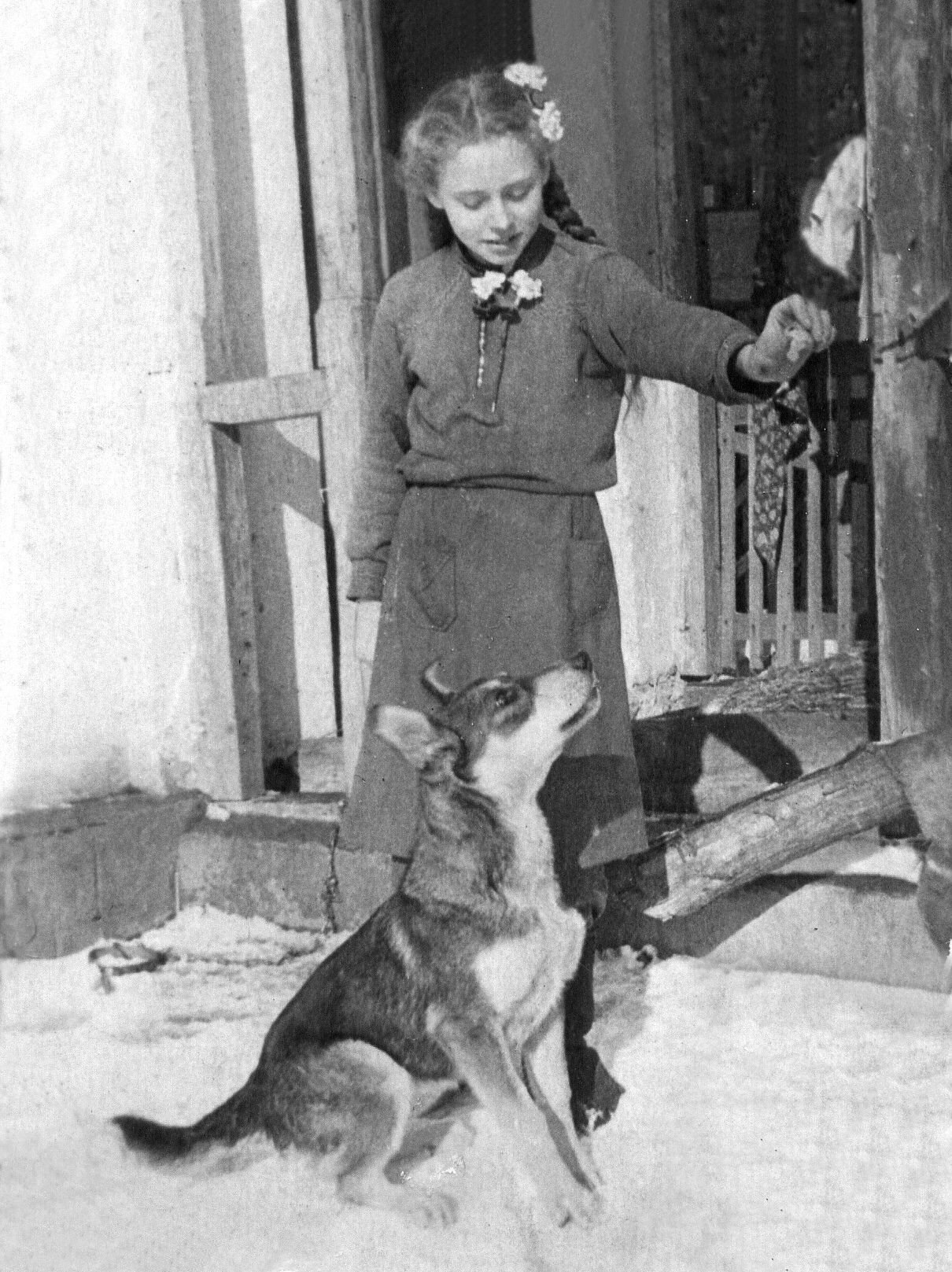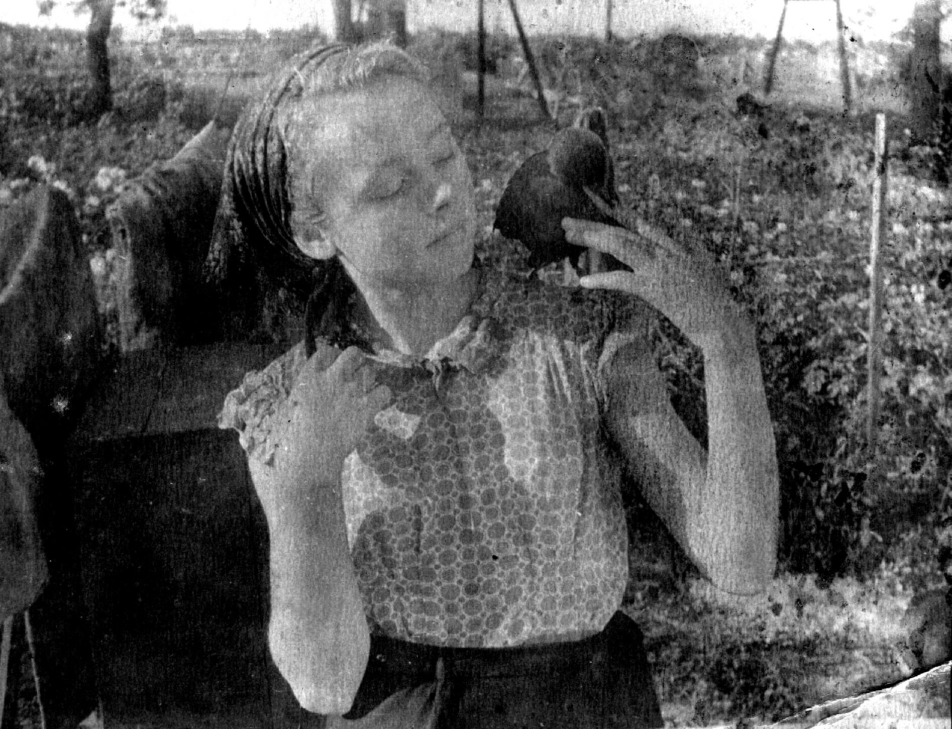 Главным хозяйственным объектом Чубинки была "засолка" - цех консервации овощей и фруктов совхоза. Сюда и устроились на работу родители Саши. Мама (в свои почти 46 лет) стала работником цеха засолки, одновременно - дворником, папа (49 лет) - начальником охраны (сторожевой и пожарной); временами ходил он и сторожить в смену. Уже в следующем, 1961 году, на 50-летний юбилей Феодосия Аврамовича, совхоз подарил ему настенные часы с боем, долгие годы остававшиеся семейной реликвией дома. Привычная к труду "Катюшка" (как ее иногда называл папа) и здесь, на новом месте, вскоре купила корову, к ведению хозяйства с которой он привыкла еще на сахарном заводе. Тем более, что здесь открывалась прекрасная перспектива приобретения дешевых кормов в совхозе и почти круглогодичного сбыта молока дачникам.Преисполненный энтузиазма Саша работал совхозным агрономом. Шестиклассницу Люсю устроили в Великоалександровскую школу. При переезде Дубчаки взяли вместе с собой любимую овчарку Барсу и выращенную Галей дома из птенца галку. Однажды, при ремонте школы (еще в Андрушках) маляры сорвали из-под крыши, за водосточной трубой, гнездо с птенцами и выбросили его на землю. Один птенец случайно остался жив. Его подобрала Люся и притащила домой тяжело больной (с высокой температурой) в этот момент Гале, которая тут же приободрилась… Галя редко спускала свою "тезку" с рук, так ручной она и выросла. Она жила в доме безо всякой клетки, свободно гуляла (летала) и на улице, но только при Гале, садилась на заборы, деревья, крыши домов, но тут же возвращалась к Гале по ее зову, или когда Галя уходила домой. Чужих людей боялась не очень, подпускала их примерно на расстояние одного метра, но тут же улетала при малейшей попытке приблизиться к ней еще ближе. В доме, на шкафу, хранила конфеты, которые любила воровать у Люси - главной сладкоежки семьи. Барса жила в будке, содержалась на цепи (так как во двор часто приходили дачники за молоком), хорошо справлялась со своими сторожевыми функциями. Но, кроме того, она была обучена Галей к выполнению фокусов на "арифметический счет". Она невероятно чутко улавливала едва заметные сигналы, которые ей подавала Галя, и всякий раз лаяла требуемое количество раз. Публика была в восторге. |