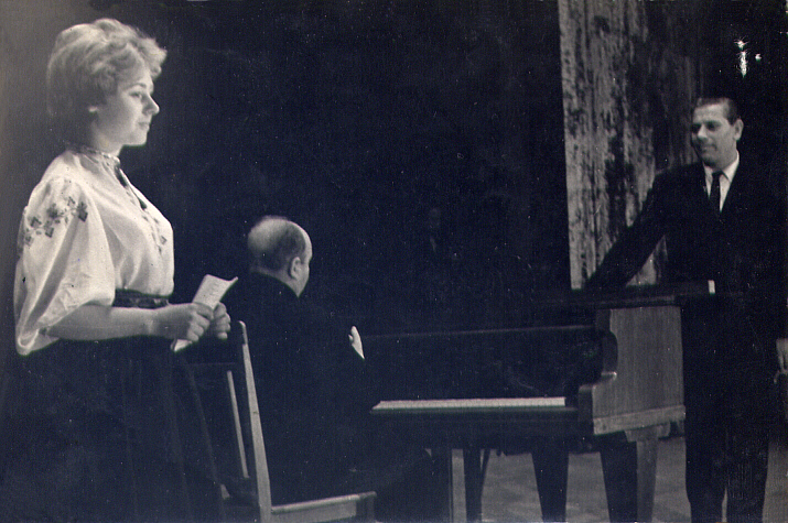 Глеб Николаевич протежировал Галю, благодаря чему она вскоре стала вести концерты, в которых принимали участие самые известные на тот момент украинские исполнители: Евгения Мирошниченко, Николай Ворвулев, Анатолий Соловьяненко и другие. (Последний вообще был едва ли не другом наших Дубчаков, так как его жена училась в институте в одной группе с Сашей). Галя становилась довольно востребованной в мире искусств. В частности, она была ведущей концертов украинских деятелей искусств в Кремлевском Дворце съездов в Москве в 1967 году, продолжавшихся более недели. |