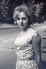 Лето 1960 ушло на обустройство семейства на новом месте. Это было одной из причин, из-за которой Галя даже не пыталась подавать документы для поступления в институт. Недоставало ей и уверенности в собственных силах. Аттестат у нее, как уже было сказано, был неплохой, но не отличный, знания - такие же. Кроме того, помимо высшего артиллерийского училища папы в семье не было опыта (тем более, традиции) стремления к высшему образованию. Наконец, в те годы в очень многих организациях (пользуясь штампом того времени - "в народном хозяйстве страны") руководящие посты занимали люди без высшего образования, и высшее руководство страны начинало понимать ненормальность такого положения. Поэтому правила поступления в вузы были изменены таким образом, что решающее преимущество при конкурсном отборе получали не отличники, пришедшие со школы, а производственники, имеющие стаж работы не менее двух лет (чтобы не писать в правилах совсем уж дикое "не менее десяти лет"). Производственников принимали вне конкурса, лишь бы они сдали экзамены хотя бы на тройки (при пятибалльной системе), а эти тройки им зачастую выставляли уже только за то, что они подали документы и явились на экзамены. Поэтому осенью этого же года Галя спокойно поступила (по объявлению в газете) в торговую школу, располагавшуюся неподалеку от завода "Большевик". И полтора года почти ежедневно ездила на занятия из Чубинки в Киев, либо автобусом "Полет" до площади Победы, либо пригородным поездом (электрички в сторону Яготина тогда еще не ходили) до центрального Киевского вокзала, а далее - любым видом городского траспорта. Учебно-производственную практику она проходила в незадолго перед этим открытом универмаге Железнодорожного района по Воздухофлотскому проспекту. Довольно часто Галя оставалась ночевать у родственников по Чеховскому переулку. Пока не стала жить там на постоянной основе (см. далее). Как раз в 1960 году открылось и Киевское метро , но его первая очередь покрывала только расстояние от вокзала до Днепра. Вторая продлила первую до ст. "Большевик" (теперь - "Шулявская") в 1963 году. Но настоящим транспортным подспорьем для жителей левобережной части Киева и прилегающих окрестностей оно стало только в 1965 году, с открытием метромоста, станций "Гидропарк", "Левобережная" и "Дарница". Ее домашняя галка, не выдержав внезапной разлуки с Галей, сначала привязалась к одной соседской девочке, а потом и вообще улетела в дикую природу, видимо, найдя там себе пару. |