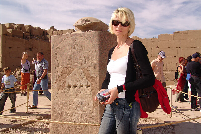 кульптурного изображения волшебного жука-скарабея в храме Карнака