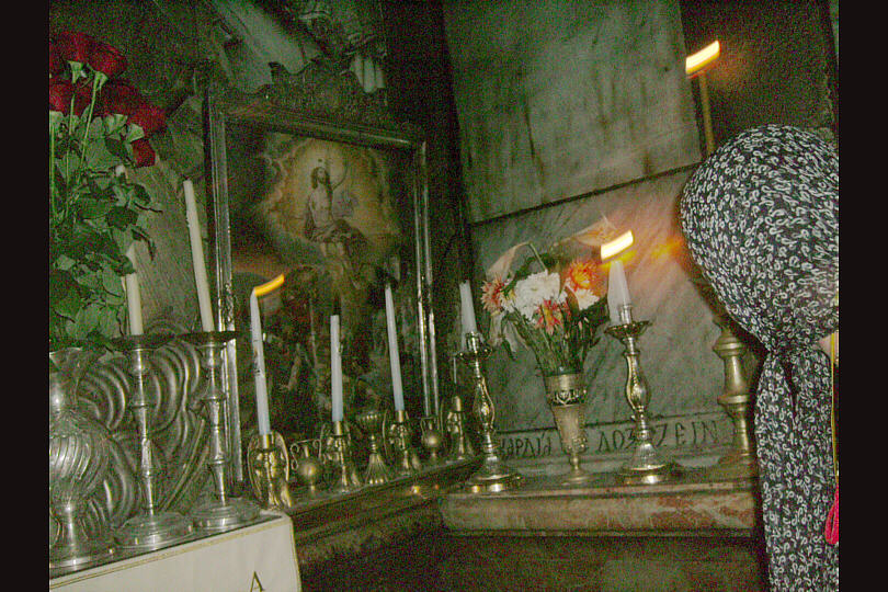 В Гробе Господнем. Тело Иисуса лежало на месте, где на снимке стоят розы