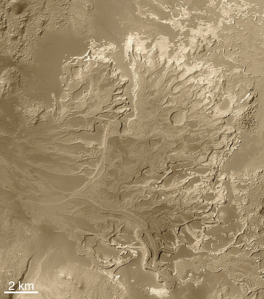На момент создания этой публикации "Кьюриосити" попал в очень сильную пыльную бурю (и это в невероятно разреженной атмосфере Марса!), поэтому по команде с Земли был переведен в ждущий режим. Как его будут потом "будить" и включать заново, не совсем понятно. Возможно, отключение проведено на фиксированное время, измеряемое на часах самого марсохода. Будем надеяться, что он не окажется под многометровым слоем пыли. На околомарсианских орбитах функционируют также три спутника, созданных землянами (американцами). Они тоже продолжают исследования поверхности и атмосферы. По ссылке можно в деталях рассмотреть дельту высохшей реки на поверхности Марса. Фото сделано с одного из спутников, находящихся на орбите планеты. Не за горами и экспедиция жителей Земли к Марсу, а затем - и на сам Марс. В США уже объявлен не один конкурсный отбор для участия в этих полетах. Рассматриваются варианты "простого" облета планеты семейной парой, "обычной" экспедиции с посадкой и возвращением экипажа, а также посадки на Марс научной экспедиции из добровольцев без последующего возвращения их на Землю (это избавило бы от сложностей с разработкой аппарата для старта с поверхности Марса). |