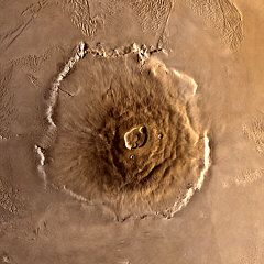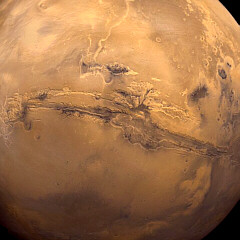Марс примерно вдвое меньше Земли по диаметру, и примерно в 9 раз - по массе. Поэтому ему трудно формировать и, особенно, удерживать свою атмосферу, которая постепенно улетучивается под напором т.н. "солнечного ветра" (потока частиц солнечного излучения), что усугубляется отсутствием магнитного поля у этой планеты. В настоящее время эта атмосфера крайне разрежена (по сравнению с Землей - примерно в 160 раз). Кроме всего прочего, это делает весьма интенсивным уровень ультрафиолетового излучения Солнца на поверхности Марса, которое, по мнению ряда специалистов, было бы губительным для большинства простых форм жизни (и просто вредно - для большинства развитых). Но, по мнению автора этих строк, оно является совершенно несущественным на стадии самозарождения жизни (а, может, даже и позитивным ее фактором). Влияние "солнечного ветра", по расчетам ученых, ощущается даже на расстояниях от Солнца, превышающих не только размеры орбиты Марса (средний "радиус" которой 228 млн. км), но и размер всей Солнечной системы. Поверхность Марса прогревается Солнцем значительно меньше, чем поверхность Земли, так как он удален от Солнца примерно в полтора раза дальше. Но не всегда то, что является явно непригодным для жизни человека, непригодно для жизни вообще. В качестве ближайшего земного примера достаточно взять Антарктиду. Из-за наличия наклона оси вращения есть на Марсе и смена времен года. Марсианские сутки мало отличаются от земных, а вот продолжительность года для этой планеты чуть ли не в два раза больше, чем на Земле (точные цифры принципиального значения не имеют). На Марсе находится самая высокая в Солнечной системе гора Олимп (26,2 км, потухший вулкан) и самый большой разлом поверхности (каньон) в комплексе долин Маринер (длина 4500 км, ширина 200 км, глубина 11 км). |