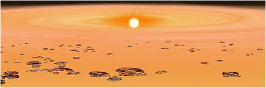 В процессе формирования Солнечной системы не все газы из ее окрестностей оказались в центре формирования новой звезды. Попасть в центр событий смогла только их часть. А когда звезда родилась и загорелась, то под напором ее излучения установилось динамическое равновесие между гравитационными силами ее притяжения и давлением этого излучения, так называемым "солнечным ветром". Локальные сгустки газа, выброшенного еще при взрыве материнской (первичной) звезды, а также, образовавшиеся из завихрений первичного межзвездного газа, повсеместно существовавшего в первые миллиарды лет после Большого взрыва в относительно больших количествах, находящиеся в момент загорания Солнца как раз за зоной пояса астероидов, стали концентрироваться вокруг местных центров гравитации, образовывавшихся подобно "твердым" планетам на более дальних от Солнца орбитах. Сами эти центры, судя по остаткам поясов астероидов на орбите Юпитера, были не такими уж и большими (раз они так и не слились в единое целое), но вполне достаточными для притяжения легких газов в их окрестностях, вдруг оказавшихся "не нужными" Солнцу. Газов этих было еще очень много, что и обусловило формирование "газовых" (точнее, из-за наличия в их составе твердых, а, возможно, и расплавленных ядер, - газообразных) планет-гигантов на внешних (по отношению к главному поясу астероидов) орбитах Солнечной системы, имеющих названия: Юпитер, Сатурн, Уран, Нептун.