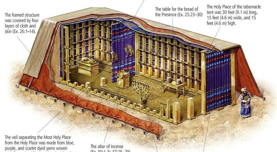Хранились эти святыни во время скитаний евреев по "пустыне" в перестраиваемом всякий раз шатре, который имел название Скинии собрания. Фактически, это был своего рода походный храм. До строительства Храма в Иерусалиме Скиния была главным святым местом для всех израильтян. А выгороженное в ней занавесом место хранения Ковчега называлось Святая Святых. Входить в это место мог только первосвященник, и то - только один раз в году. (А также при переходах израильтян на новое место, вслед за т.н. облаком Славы Божей [то есть, Святого Духа], которое, якобы, всегда находилось над Скинией, и которое, как считается, постоянно проявляло присутствие Бога рядом со своим народом).