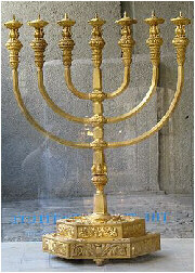 Согласно официальной трактовке, все барельефные изображения на этой скульптуре символизируют различные виды деятельности израильтян, и, в конечном счете, их возвращение домой, на историческую родину. Шестиугольная звезда, согласно легенде, присутствовала на щите великого царя Давида как божий знак и конкретно означала его имя в сокращенной записи - ДВД, как это принято и в древнееврейской, и в современной (на иврите) еврейской грамматике, без гласных. Тогда его имя записывалось буквами далет, вав, далет. Буква далет изображалась как треугольник (сравните с греческой буквой дельта). Средняя буква вав означает шесть, она и стоит в середине такой записи имени, в виде шестиугольника. Гексаграмма (шестиугольная звезда) называется иногда еще и печатью Соломона, из-за его перстня с этим изображением. В каббале (см. далее) два треугольника символизируют свойственную человеку дуальность: добро против зла, духовное против физического и так далее (сравните с инь и ян в китайской философии). Треугольник, направленный острием вверх, символизирует наши добрые дела, которые поднимаются на небеса и вызывают поток благодати, нисходящий обратно в этот мир (что и символизирует треугольник, направленный вниз). * * * * * * * Еще одним, просто таки легендарным символом иудаизма является Храм Господний. Главный и единственный в свем роде на весь Израиль. За его многовековую историю было возведено, разрушено полностью или частично, разграблено и вновь восстановлено из руин три Храма.