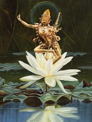Жена царя увидела сон, в котором к ней явился белый слон и вошел в ее правый бок. Наутро звездочеты объяснили ей и царю, что у них родится сын, который или станет царем всей земли, или отшельником, бродячим монахом, а затем - Буддою, тем, кто будет спасать людей.
