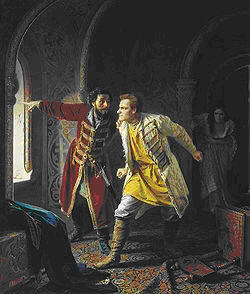 [Чего только не говорят эти продажные придворные летописцы! Политика в этом "объяснении" приплетена только в угоду царскому статусу семейства - Прим.А.] Согласно с этим повествует современный историк ливонской войны Гейденштейн. Он прибавляет, что в это время народ волновался и оказывал царевичу особое перед отцом расположение, и через то отец раздражался на сына. [Это "согласно" только проясняет дополнительные обстоятельства, общую психологическую обстановку в семействе и окружении царя, но никак не объясняет истинную ПРИЧИНУ убийства - Прим.А.] "Антоний