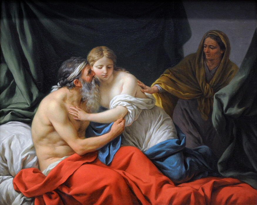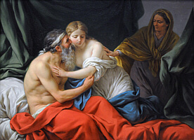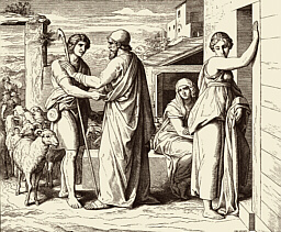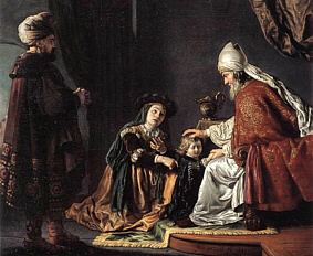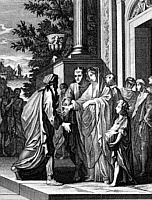 На рисунке справа: Авимелех (в короне, в центре) возвращает Сарру Аврааму И смилостивился,