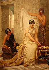 Аврам опасался, что египтяне, будучи пораженными неземной красотой его жены Сары, просто убъют его из-за нее. Поэтому при въезде в египетские земли супруги договорились, что будут выдавать себя за брата и сестру (тем более что они и вправду наполовину ими были). Ажиотаж вокруг Сары действительно поднялся неимоверный. Молва о ее красоте опережала их обоз. И как только они добрались до города проживания фараонов (тогда это был Цоан в дельте Нила; столицей же был Уасет/Фивы/Луксор на Верхнем Ниле), то вельможи-царедворцы сразу отобрали Сару у Аврама (правда, за огромный выкуп натуральным хозяйством). Он, естественно, и не думал сопротивляться. Вот тут то и взошла настоящая звезда Сары. И как нельзя более кстати пришлось ее бесплодие. Она быстро втянулась в обстановку дворцового шика, и едва ли не еще быстрее оказалась в постели могущественного правителя Египта. И не ясно, выбиралась ли она из нее вообще. Грубо говоря, Сара просто замучила несчастного фараона своим неистовым темпераментом. Истязала его, как хотела. (Таких подробностей в первоисточнике, естественно, нет, но последующие события показывают, что именно так все и было). Дом фараона потрясали неприятности ("Господь поразил тяжкими ударами") на почве разгула веселья и ревности, а сам фараон очень скоро слег, объявив себя больным (таким он вскоре стал и на самом деле). Пришлось фараону призвать к себе Аврама и упрашивать его забрать Сару обратно. Он упрекнул гостя в том, что тот не признался, что Сара - его жена. Поэтому, мол, и он взял было ее тоже "себе в жену". "Бери ее и уходи" - сказал фараон. Аврам тут же с радостью согласился, тем более что в придачу к Саре ему разрешили оставить себе весь скот, всех рабов и всех рабынь (Быт.12,14-20). И еще наградили на дорогу золотом и серебром (Быт.13,2). Молодые (а они таки действительно были еще молодыми и красивыми, см. развитие событий) вернулись в Ханаанскую землю (теперь эти края входят в Израиль, Иорданию, Сирию и, частично, в Турцию) и поселились у Хеврона (этот город процветает и сегодня). Детей у них, по-прежнему, не было. Сара никак не могла зачать. ("Зате кохання було страшне, палке i несамовите". :))) ). С каждым днем желание иметь ребенка становилось все сильнее. И тогда Сара привела к Авраму свою служанку Агарь, чтобы та забеременела от него, а будущего ребенка затем отдала им. Эту ситуацию в дальнейшем пытались иллюстрировать несколько художников (явно модный сюжет):