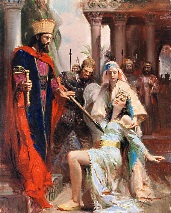 Могучим был царь Навуходоносор и его преемники по Нововавилонскому царству, но уже через неполных 50 лет после окончательного падения Иерусалима (587 г.д.н.э) и вавилонского пленения израильтян/иудеев оно перестало существовать. Все земли на огромной территории от Эфиопии (северо-восточная Африка) до Индии были покорены персидской империей Ахеменидов. Одним из ее царей был Артаксеркс Великий, вступивший на трон в 465 г.д.н.э. (через 120 лет после краха Иудейского царства). Однажды Артаксеркс устроил в своем дворце огромный пир для вельмож, собравшихся со всех концов страны, и ближе к его завершению, на седьмой день гуляний, решил похвастаться перед собравшимися красотой свой главной жены - царицы Астинь. Но та занималась приемом женской части общества на своей половине царского дома, поэтому по зову царя не явилась, сославшись на то, что она не принимает приказы, переданные через евнухов (а, между тем, никакого иного способа вызвать ее не существовало; так что это был обычный женский каприз). Царь сильно разгневался, пришел в ярость, и попросил совета присутствующих здесь же мудрецов, как ему поступить в такой ситуации. Мудрецы объявили, что такой поступок царицы не допустим и не простителен, так как может послужить в качестве дурного примера для всех других жен в царстве, в том числе, в домах его самых знатных вельмож. И что ее царское достоинство царю следует передать "другой, которая лучше ее" (Есф.1,10-19). А саму Астинь следует больше даже не допускать "к лицу" царя. Артаксеркс так и поступил. Вдобавок, он разослал во все области (провинции) своей огромной империи письма на языках всех живущих в них народов, о том, что всякий муж должен быть господином в своем доме. И сразу после этого по всей стране начался поиск красавицы, способной стать новой женой и царицей.