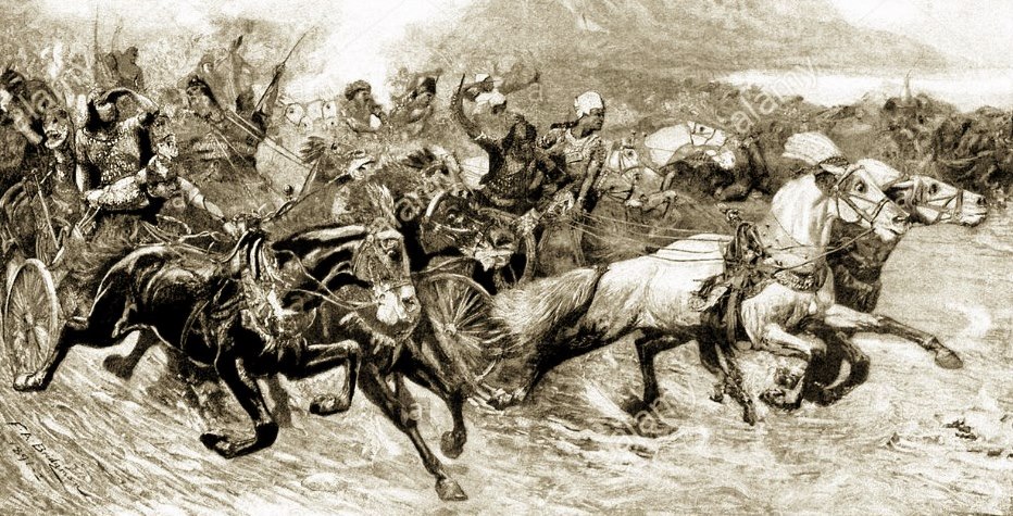 Кстати, погоня войск фараона за евреями в последней ее фазе была крайне замедленна, потому что: … в утреннюю стражу воззрел Господь на стан Египтян из столпа огненного и облачного и привел в замешательство стан Египтян; 25 и отнял колеса у колесниц их, так что они влекли их с трудом.(Исх,14,24-25) Как раз это совершенно понятно. Действовала та же спецгруппа Моисея, что и ранее, при истреблении египетских младенцев. Или аналогичная. Это уже серьезная военная тактика.