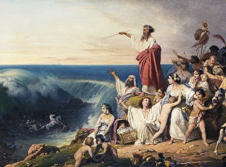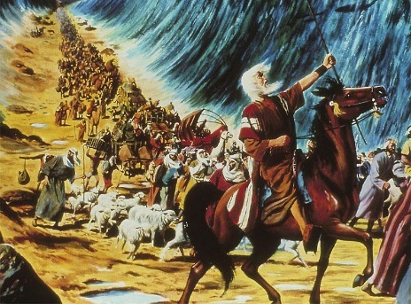 Где-то на третий день фараон спохватился и бросился со своим войском вдогонку за евреями, чтобы вернуть их. А дальше произошло то самое великое чудо, которое, по сути, отсутствует в исходном варианте Ветхого Завета (его начала - Пятикнижья, Торы), зато красочно расписано (по устным преданиям?) на древнегреческом, латинском, английском (в т.н. Международной версии Святой Библии) и русском вариантах Писания, а именно - переход евреями Красного (Чермного) моря, по его дну, которое силой своего влияния заставил открыться Моисей, опирающийся на волю и силу Господа. Моисей простер руку, а Господь всю ночь гнал море сильным восточным(?) ветром, пока воды не расступились. (Но почему восточным, в лицо евреям, а не попутным, западным? Ответа на этот вопрос Ветхий Завет не дает. А в исследованиях энтузиастов ответ находится, см.ниже). Почти догнавшие Израиля (так уже тогда называли народность евреев, и таков стиль записей в Библии) воины фараона, несшиеся по морскому дну, внезапно были затоплены водами, сомкнувшимися почти сразу после того, когда все евреи достигли противоположного берега.