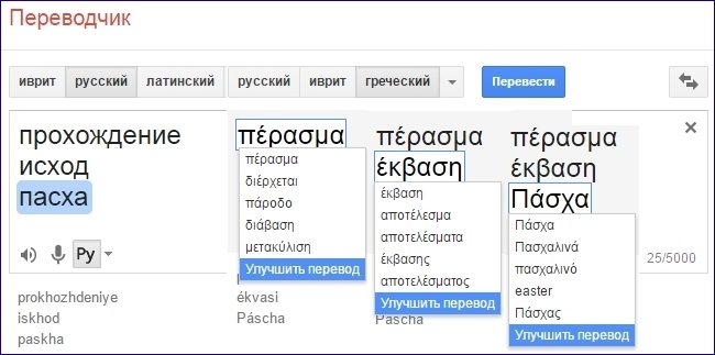Для окончательного выяснения сути использованных здесь понятий рассмотрим самые критические слова 12-й главы Исхода, взятые из Библии на иврите и древнегреческом и с подстрочными переводами к ним на английском и русском языках (основная часть материала – с сайта http://www.biblezoom.ru/):