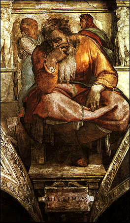 Позже уже он и сам сажает Иеремию в заключение за его деморализующие пророчества: 1 …в десятый год Седекии, царя Иудейского; этот год был восемнадцатым годом Навуходоносора. 2 Тогда войско царя Вавилонского осаждало Иерусалим, и Иеремия пророк был заключен во дворе стражи, который был при доме царя Иудейского. 3 Седекия, царь Иудейский, заключил его туда, сказав: "зачем ты пророчествуешь и говоришь: так говорит Господь: вот, Я отдаю город сей в руки царя Вавилонского, и он возьмет его; 4 и Седекия, царь Иудейский, не избегнет от рук Халдеев, но непременно предан будет в руки царя Вавилонского … (Иер,32,1-5). Сам Седекия для поднятия боевого духа издал указ (“заключил завет со всем народом”) об освобождении всех рабов-иудеев, которые были были у жителей Иерусалима (Иер,34,8-11). Потрясающе прогрессивное нововведение! Правда, вскоре их бівшие владельцы, “раздумавши”, стали брать их назад в рабство. (А как же указ царя?) Во время неожиданного прихода войск египетского фараона и временного отхода от стен Иерусалима халдейского войска, Иеремия совершил побег, но был пойман начальником стражи. Его побили, подозревая в намерении перебежать к халдеям, и снова заключили в темницу. После короткой тайной аудиенции у царя-внука, Иеремию перевели в более легкое заключение “во дворе стражи”, давая по куску хлеба ежедневно (Иер,37,11-21), пока хлеб в городе вообще не закончился (ведь это происходило в условиях осады). Вскоре Иеремия перешел к прямым призывам к сдаче, … Иеремия произнес ко всему народу, говоря: 2 так говорит Господь: кто останется в этом городе, умрет от меча, голода и моровой язвы; а кто выйдет к Халдеям, будет жив, … 4 Тогда князья сказали царю: да будет этот человек предан смерти, потому что он ослабляет руки воинов, которые остаются в этом городе, и руки всего народа, говоря к ним такие слова; ибо этот человек не благоденствия желает народу сему, а бедствия. 5 И сказал царь Седекия: вот, он в ваших руках, потому что царь ничего не может делать вопреки вам. 6 Тогда взяли Иеремию и бросили его в яму Малхии, сына царя, которая была во дворе стражи, и опустили Иеремию на веревках; в яме той не было воды, а только грязь, и погрузился Иеремия в грязь. … 8 И вышел Авдемелех из дома царского и сказал царю: 9 государь мой царь! худо сделали эти люди, так поступив с Иеремиею пророком, которого бросили в яму … 10 Царь дал приказание Авдемелеху Ефиоплянину, сказав: возьми с собою отсюда тридцать человек и вытащи Иеремию пророка из ямы, доколе он не умер. … 13 И потащили Иеремию на веревках и вытащили его из ямы; и оставался Иеремия во дворе стражи (Иер,38,1-13). А вот царь Вавилонский Иеремию, за все его деяния в его пользу, оставил в покое (см. выше). На старости лет Иеремия, уподобляясь своим предшественникам, начинает выдвигать политико-географические пророчества, среди которых удачным (как и у Исаии), фактически, стало только одно – крах Вавилона. Эта перемена в Иеремии произошла под воздействием реалий вавилонского плена: убийство сыновей Седекии и ослепление его самого, каннибализм голодающих плененных иудеев и др. 20 "Воззри, Господи, и посмотри: кому Ты сделал так, чтобы женщины ели плод свой, младенцев, вскормленных ими? … (Плач,2,20). 10 Руки мягкосердых женщин варили детей своих, чтобы они были для них пищею … (Плач,4,10). Вот это так мягкосердые! Жалуется старый Иеремия и на свою не