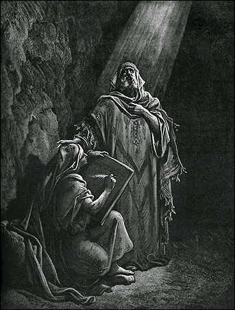 Когда Моисей пас овец своего тестя Иофора, то увидел в пустыне, в пламени огня горящего, но не сгорающего тернового куста, ангела, оказавшегося самим Господом-Богом, которого Моисей хорошо слышал, но визуально видел только в первый момент, так как сразу же, как только услышал слова «Я Бог…» … Моисей закрыл лице свое, потому что боялся воззреть на Бога. (Исх,3,1-6)