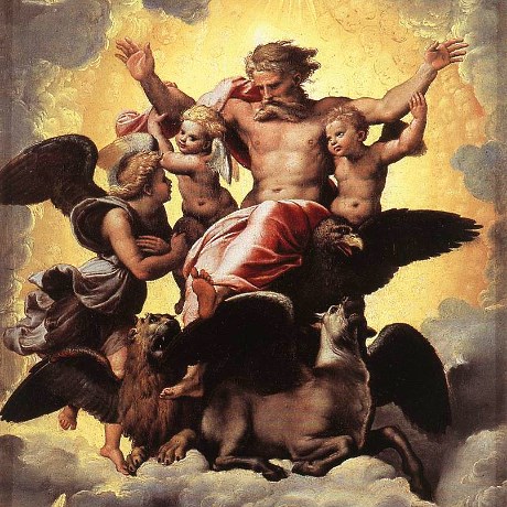 На иврите и в английском имеется только то, что попало во вторую чась русского перевода этого фрагмента. А первая часть (о связи видения Иезекииля с понятием славы Господней) - уже становящаяся привычной выдумка русских переводчиков. Загадочное существо Иезеккииля появляется в его книге еще несколько раз, но уже без прямой связи с понятием славы Господней. Сама она упонимается еще 4 раза, и лишь однажды со ссылкой на саму себя (слава, как слава): И встал я, и вышел в поле; и вот, там стояла слава Господня, как слава, которую видел я при реке Ховаре; и пал я на лице свое (Иез,3,23). И, наконец, из начала фразы "Такое [КАКОЕ именно?] было видение подобия..." (Иез,2,1) совсем не понятно, к какой ЧАСТИ предыдущей главы автор относит это указательное местоимение. Из этих слов совсем не вытекает (и совсем не обязательно), что ко всей главе! А никаких уточняющих предписаний по этому поводу Иезекииль не приводит. Если, например, в первой главе начать рассмотрение видения с самого Господа на сапфировом престоле ("как бы подобие человека вверху на нем"), что вполне логично, то все остальное - просто антураж вокруг Господа и его величия, и частью славы не является (и с какой бы это стати?) Впрочем, огонь, сияние и радугу можно оставить в составе "славы", как видимые и вполне логичные составляющие природы, именно Господом и созданной (если верить в это). По указанной выше причине, включение экзотических животных в состав "славы" вполне может быть только кажущимся. Вопросом трактовки, интерпретации текста и накопившихся традиций. (В пользу этого соображения работает и наличие в видении сплетенных колес у основания системы, явно не вписывающихся в понятие славы или величия). * * * * * * * В других местах Писания, и в Ветхом Зевете, и в Новом, и даже в самой книге Иезекииля, понятие славы Господней, как признание Его силы и величия, конечно, присутствует. И довольно часто. Но больше нигде они не привязываются к каким-то фантастически причудливым животным. В этом нет никакой нужды. * * * * * * * Многие художники пытались воплотить животных Иезекииля с 4-истоковой сутью (по этой причине называющихся, с латыни, Тетраморфами; хотя в русской редакции Библии это слово ни разу не встречается) в завершенный визуальный образ. Но из-за нечеткости описания и существенной противоречивости разных фрагментов текста, а также различия (как раз по указанным причинам) его трактовок, никому из них не удалось изобразить фантазию пророка, в полной степени (что, очевидно, невозможно, в принципе). У одних из них лучше получались одни детали, у других - другие. Но даже число этих деталей является предметом споров (из-за противоречивых технических требований к ним), не говоря уже о художественных сложностях. Ближе других к первоисточнику (по отдельным признакам) подошли авторы следующих работ: