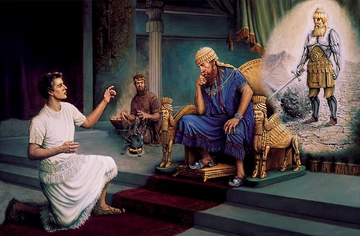 Царь тут же потребовал и толкование этого сна (а кому не хочется знать свое будущее!) Главным символом сна Даниил объявил серебрянного истукана на глиняных ногах, каждая часть тела которого обозначала государства, окружающие Вавилон. (Более детальные подробности излагать здесь нет смысла). Всем им Даниилом было "предписано" повалиться или совсем развалиться. В результате удачного толкования, довольный царь приблизил Даниила к себе, поставив его старшим над всеми мудрецами и князьями. Сохранял свое положение Даниил и при всех последующих царях, всегда удачно истолковывая их сны.