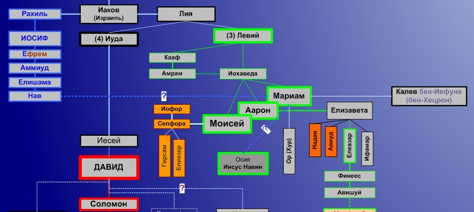 Как получилось, что приемником Моисея стал именно он? Для облегчения восприятия и наглядности повторяем схему родственных связей, уже демонстрировавшуюся ранее, в разделе, посвященном самому Моисею: