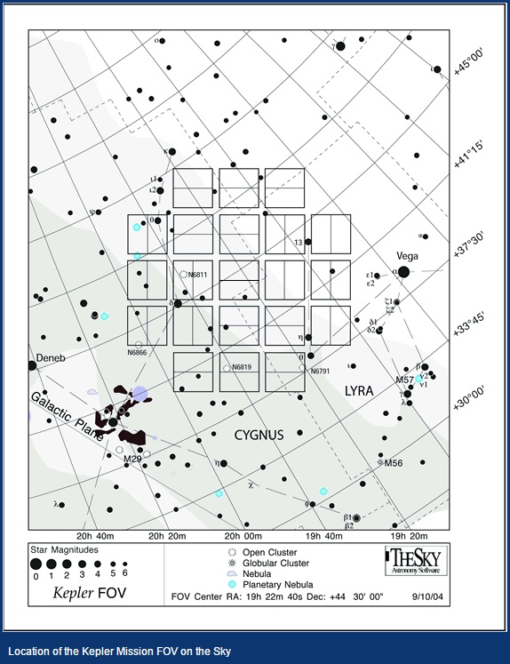 Для исследований был выбран участок неба в районе созвездия Лебедя. Подавляющее большинство звезд в этом направлении по размерам сопоставимы с нашим Солнцем, что теоретически создает хорошие условия для наличия у них своих планетных систем, подобных нашей. Кроме того, при такой ориентации сразу исключается попадание в поле зрения телескопа любых объектов Солнечной системы (СС), имеющих чрезвычайно высокую яркость и способных помешать проведению исследований.