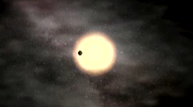 "Облака" на этом небе представляют собой скопления газов (исключительно разреженные, но огромные!) по пути к зведе, а также (и это главное!) скопления гораздо более удаленных звезд, составляющих фон поля наблюдения. Для того, чтобы такое "звездное затмение" можно было увидеть (даже хотя бы теоретически!), находясь в пределах Солнечной системы, необходимо чтобы плоскость орбиты искомой экзо-планеты хотя бы приблизительно совпадала с местонахождением Солнца (и, следовательно, нас исследователей, со своими телескопами). Реально такому условию отвечает только крайне незначительная часть любых космических объектов, в том числе, и экзо-планет. Считается, что мы можем наблюдать только 1 - 2 %% от их общего количества. Кстати, подобным образом, при помощи простых оптических телескопов, открыто большинство спутников планет нашей системы.