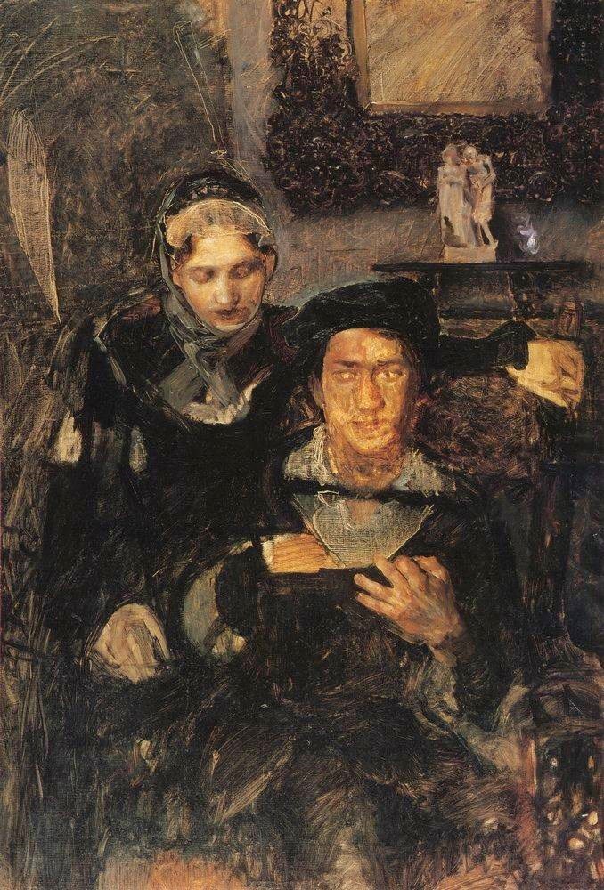 Михаил Александрович Врубель родился 17 марта 1856 г. в Омске, в семье потомственных военных и юристов, как по линии отца Александра, так и по линии матери Анны Басаргиной. Фамилия Врубель – польская, означающая воробей. Первым известным (по отношению к будущему художнику) ее носителем был прадед Михаила Антон, работавший судьей в Белостоке (Польша). Всего в семье было 4 детей, Михаил – второй по счету (первой была старшая его сестра, как и мать - Анна). Практически сразу после рождения четвертого ребенка их мать умерла от чахотки. Едва не последовал за ней и Михаил. Малолетние его брат и сестра пожили по несколько лет, но тоже умерли, еще детьми. В дальнейшем заботу о детях взяла на себя новая жена отца (Елизавета Вессель) и ее брат Николай. Семья военного была связана с частыми переездами, поэтому за короткое время, еще будучи ребенком, Михаил проживал в Астрахани, Харькове, Саратове и С-Петербурге. Рисовать под руководством профессионалов он начал еще в Саратове. В столице Михаил поступил в гимназию, но уже через три года, в связи с очередным назначением отца, вместе с семьей отца переехал в Одессу. Михаил очень увлекался гуманитарными науками, но прекрасно справлялся и со всеми естественно-научными предметами. В результате, он закончил Одесскую Ришельевскую гимназию лучшим выпускником, получив золотую медаль. О карьере художника он тогда даже не задумывался, и по семейной традиции поступил на учебу в качестве юриста, в Петербургский университет. Но здесь на пути Михаила неожиданно возникли сложности, связанные с желанием охватить все стороны общественной жизни - литературу, историю, философию, театр, молодежные вечеринки, светские балы (оплачивал все это уже упоминавшийся дядя, хоть и неродной, брат мачехи), что пошло в ущерб университетской учебе по курсу юриспруденции. Второй курс он проходил дважды, а диплома так и не получил, так как не смог написать выпускную (дипломную) работу. Выпущен из университета в звании «действительного студента» (типа обучался, все прослушал). В дальнейшем подрабатывал гувернёром в очень богатых семьях. Вместе с одним своим воспитанником провел лето во Франции, Швейцарии и Германии. (Позже побывал и в Италии). Был близко знаком со знаменитыми художниками и композиторами того времени. Недолго прослужил в армии, в которой и произошел перелом в его сознании. Его праздная прежде жизнь стала серьезной и организованной. И в 1880 году Михаил Врубель поступил в Академию художеств, сначала – вольным слушателем. По времени так совпало, что он учился вместе с Васнецовым, Репиным, Суриковым и Серовым. Творческая атмосфера и здоровая конкуренция способствовала быстрому росту художественного мастерства каждого из них. Пошли работы, конкурсы и заказы. Сюжеты работ были бытовыми, классическими и религиозными (портреты заказчиков, «Натурщица», «Гамлет и Офелия», «Обручение Марии с Иосифом» и др.)