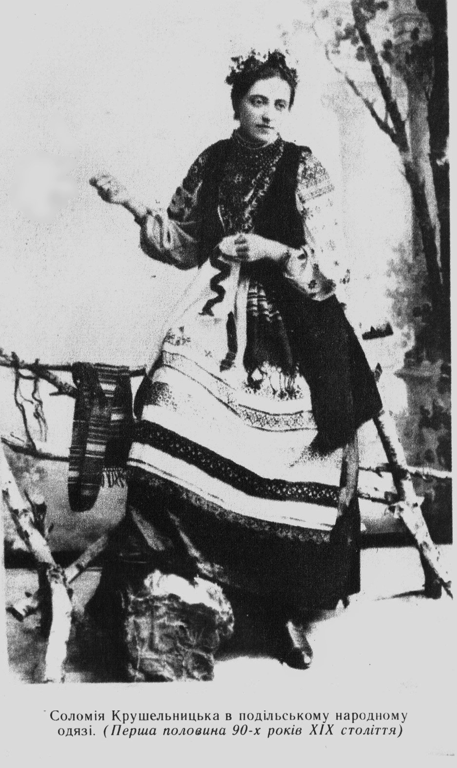 Сім'я Крушельницьких. Соломія стоїть, спираючись За обставинами служби батька сім'я кілька разів змінювала місце проживання, але з 1878 року вона остаточно перебралася до села Біла (недалеко від Тернополя). Соломія змолоду вечорами співала в гурті дівчат десь у садку чи на сільському майдані. Вже тоді голос її був сильний, гарний і дуже відрізнявся від інших. Майбутня співачка знала дуже багато народних пісень, які вона вивчала безпосередньо від селян. Між іншим, сестри Соломії Ганна та Емілія згодом теж стали співачками. Навчалася в Тернопільській школі товариства «Приятелі музики». Основи музичної підготовки отримала у Тернопільській класичній гімназії, в якій здавала іспити екстерном. Перший прилюдний виступ Соломії відбувся у 1883 році на Шевченківському концерті в Тернополі. Вона співала у складі хору товариства «Руська бесіда». У тому ж таки Тернополі Соломія Крушельницька вперше познайомилася з театром. Тут час від часу виступав Львівський театр товариства «Руська бесіда», в репертуарі якого були опери Семена Гулака-Артемовського та Миколи Лисенка. 1891 року Соломія вступила до Львівської консерваторії, де здібності молодої співачки одразу помітили і достойно оцінили. Свою першу оперну партію вона виконала ще студенткою. Під час навчання Соломія опановувала паралельно фортепіано і вокал. У 1893 році Соломія Крушельницька закінчила консерваторію з відзнакою - срібною медаллю та одразу отримала запрошення до Львівського оперного театру. Встигла заспівати у двох його оперних спектаклях. Проте, через обмеженість репертуару театру та повну відсутність у ньому українських спектаклів (театр був польський), вона одразу, того ж року, поїхала до Італії, щоб продовжити навчання там. Опанувавши ряд оперних партій композиторів Італії (та інших), Соломія вже через рік повернулася до Львова і розпочала свої виступи тут, які тривали, з перервами, близько 10 років. Так і жила вона в той час - між Львовом та Італією. Виступала в італійських театрах Кремони, Парми, Трієсту, Бергамо... У 1898-1902 дуже часто виступала у Варшаві, гастролювала і в Петербурзі (Тетяна у "Євгені Онєгині"). В 1902 році Соломія тріумфально виступала у Парижі ("Лоенгрін"). В 1903 - в Неаполі ("Аіда"). У 1904 році у Мілані провалилася прем'єра опери Пуччіні "Батерфляй" (без участі С.Крушельницької). Через півроку, коли за виконання головної партії взялася Крушельницька, повторна прем'єра (з дещо переробленою музикою та структурою спектаклю) пройшла з грандіозним успіхом. (Правда, побоючись повторного провалу, режисер-постановник переніс нову прем'єру з La'Sсala до театру м. Бреші, 85 км від Мілану). Захопленню публіки не було меж! Після цього успіху композитор подарував Соломії свій живописний портрет з написом: «Найпрекраснішій і найчарівнішій Баттерфляй». В 1906 році Соломія була запрошена до складу міланської La'Scala, де виконала ряд головних партій ("Саломея" - 1906, "Глорія" - 1907, "Електра" - 1909, пізніше - "Федра" - 1915).