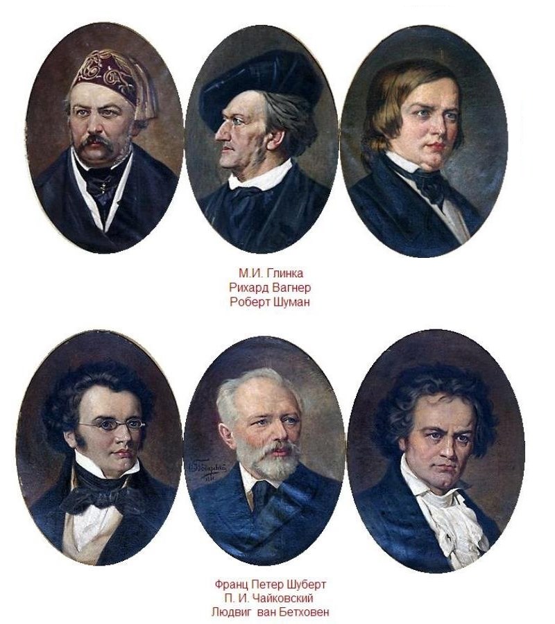 Некоторые из 14 исходных портретов зала консерватории: