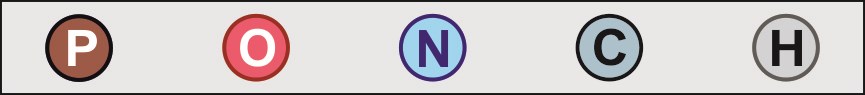 В этой и следующей темах при рассмотрении химических процессов (а ничего другого в них практически и нет) использованы как старые, традиционные названия химических элементов, так и новые, приближенные к международным. Для наглядности рисунков (показывающих структурные схемы химических молекул) использованы современные "расцветки" ядер атомов, хотя они порой и противоречат традиционной человеческой логике. Казалось бы, углерод/карбон стоило бы раскрашивать черной краской (уголь, сажа, графит), нейтральный азот/нитроген - серой, кислород/оксиген - голубой (цвет неба и баллонов с этим газом) и т.д. Но современные молекулярные химики и физики главным считают потенциал полярных молекул (по сути - их пространственную валентность), и самый высокий его уровень обозначают красным цветом. А он, по крайней мере, в биологии, создается кислородом (оксигеном). Вот он и стал в современной интерпретации красным. Ядра главных биогенных химических элементов обычно имеют следующие условные обозначения и цвета: