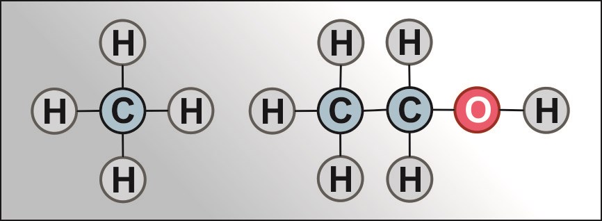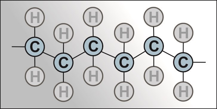 Большинство органических молекул построено вокруг атомов или цепей углерода, 4-валентного биогенного элемента. Наиболее частым его партнером бывает водород, который из-за этого зачастую вообще в формулах (для их упрощения) не показывается, а только обозначается чертой валентности.