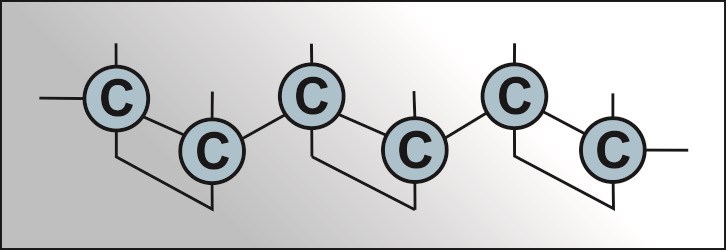 Однако в реальной жизни, не на бумаге, такая цепь не может располагаться строго по одной прямой, так как такое взаимное положение атомов является наименее устойчивым. (Очень грубой аналогией такой неустойчивой конструкции могла бы послужить детская башня из очень маленьких кубиков, выстраиваемая по одному кубику вертикально вверх. И то она была бы намного более устойчивой.) Как минимум, эта цепь является ломаной. А то и замыкается сама на себя.