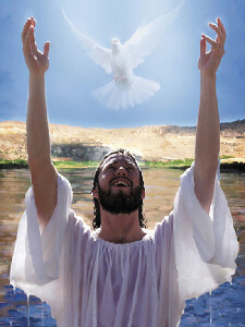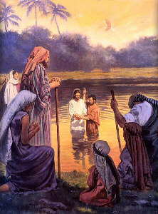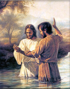 Имея ввиду знатное церковное происхождение Иоанна (ведь его официальный отец, муж Елизаветы, - Захария - был одним из первосвященников того времени), многие ему охотно верили. И именно он окрестил таким способом (водой Иордана) и самого Иисуса Христа, а также был главным свидетелем т.н. Богоявления - голоса Господа с небес, извещавшего, что Иисус его "Сын излюбленный", сопровождавшегося снисхождением на Христа Святого Духа в образе голубя, севшего ему на плечо.